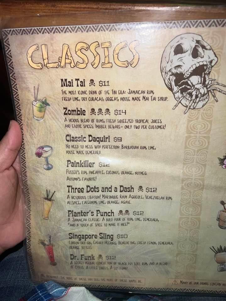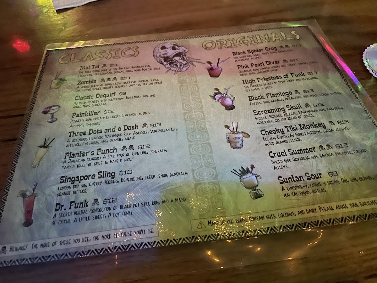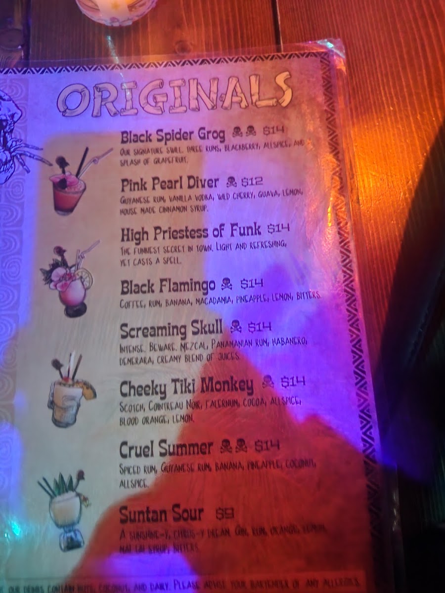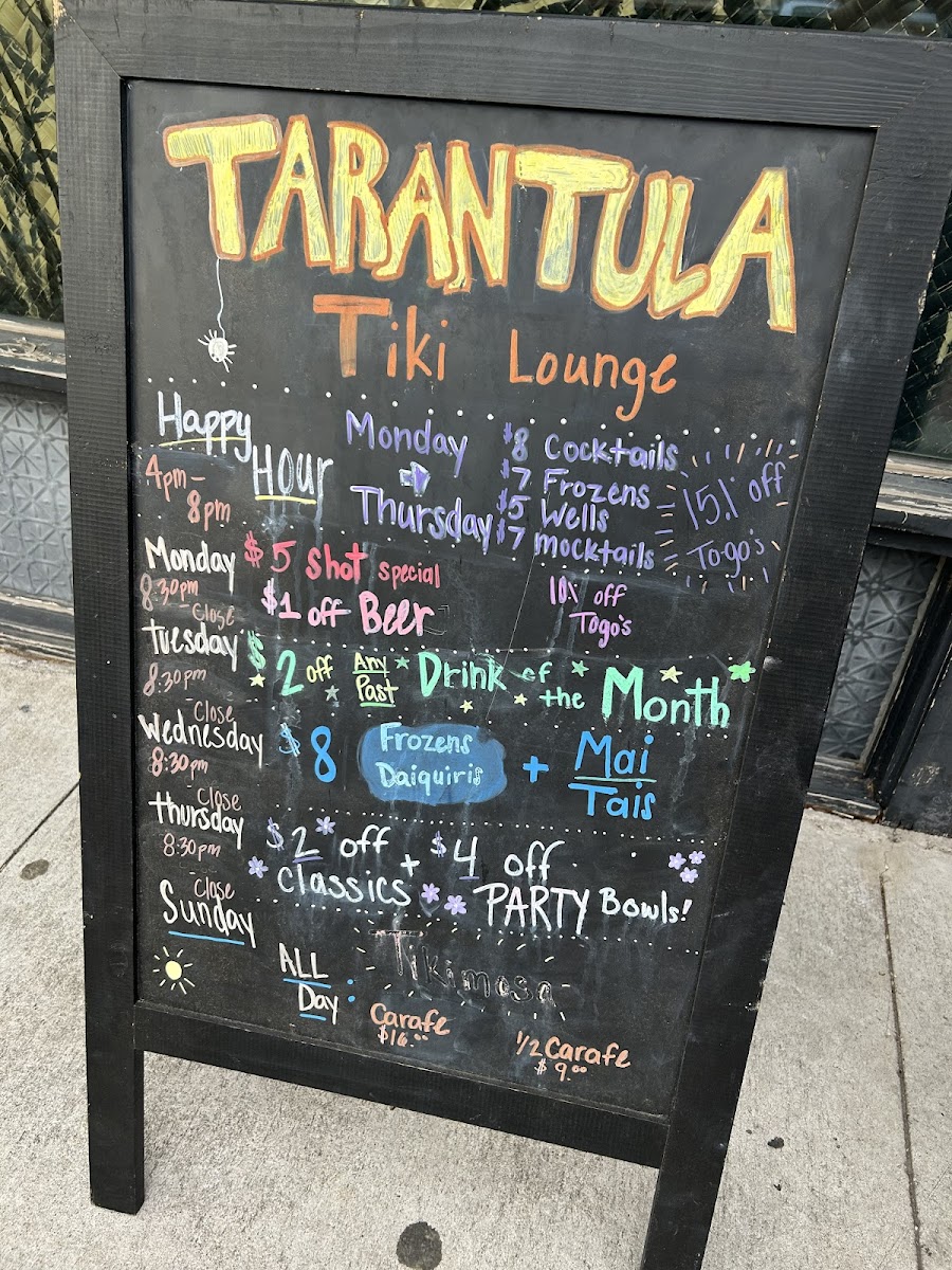 Tarantula Tiki Lounge Menu
